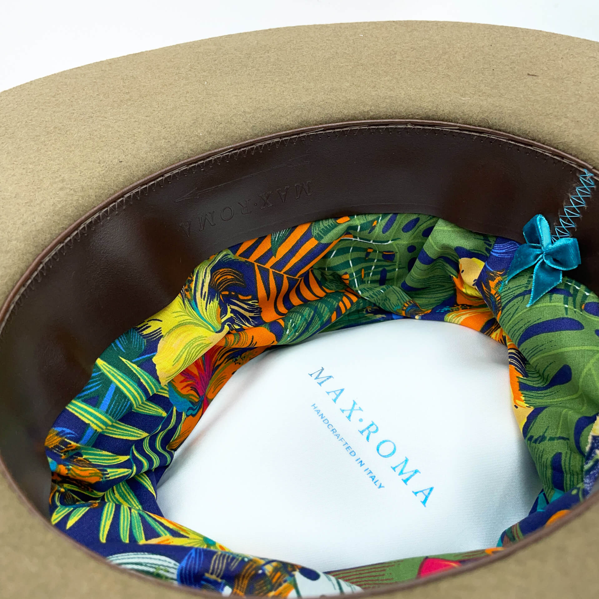 Ha una tesa media di 9 cm ed è rifinita con marocchino in pelle e una fodera interna con logo Max Roma per dargli un tocco di assoluta eleganza.