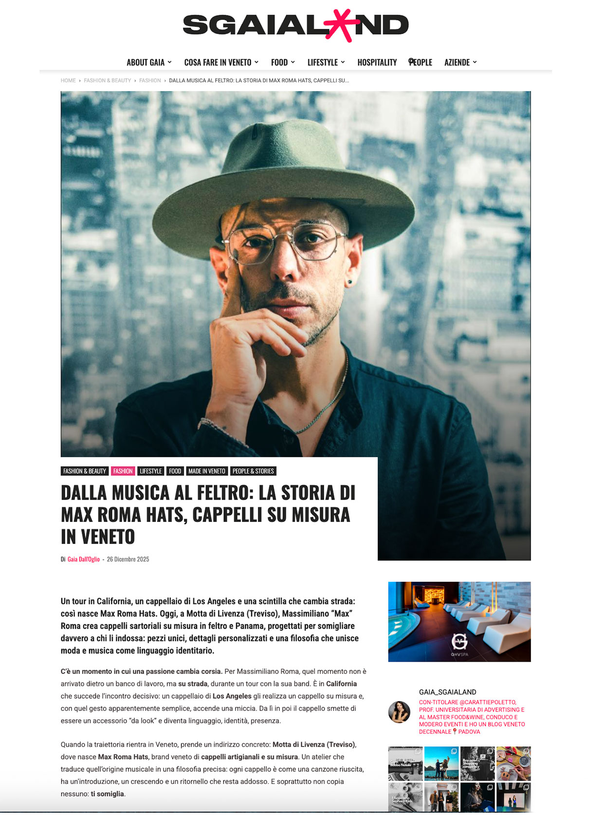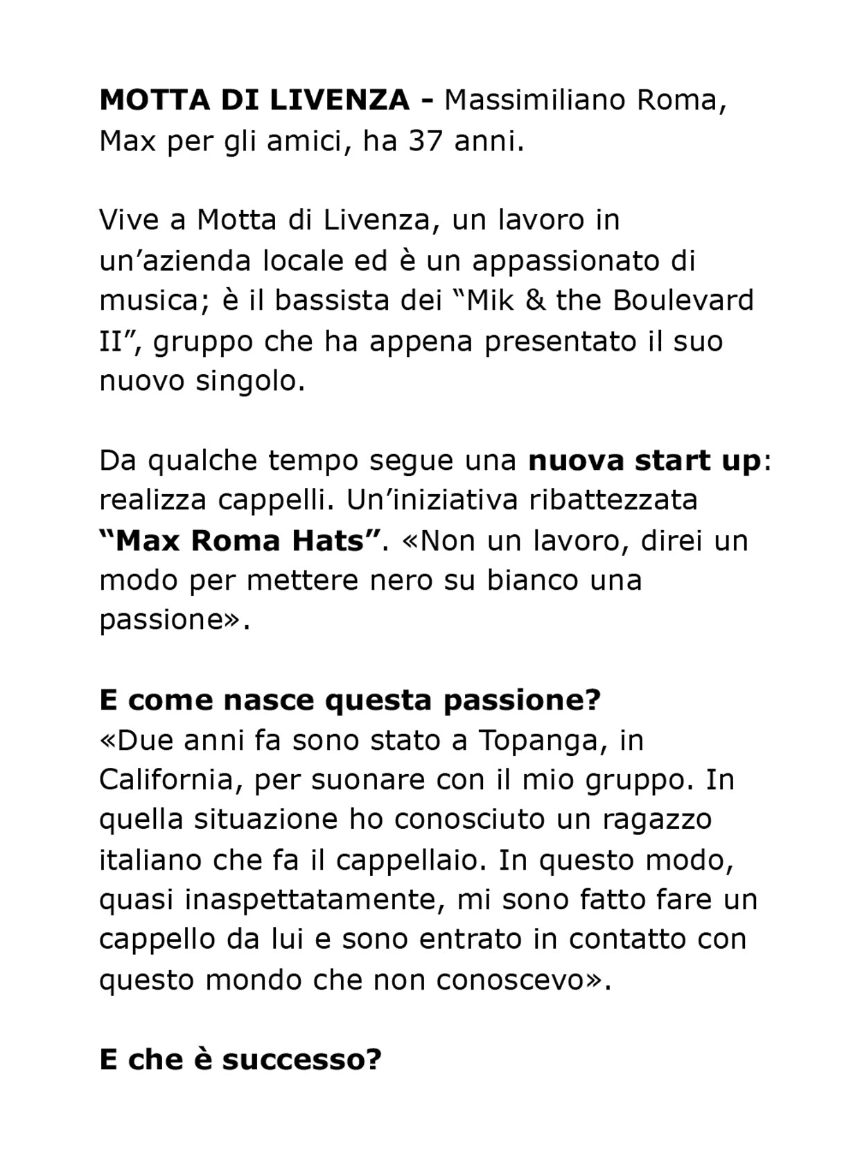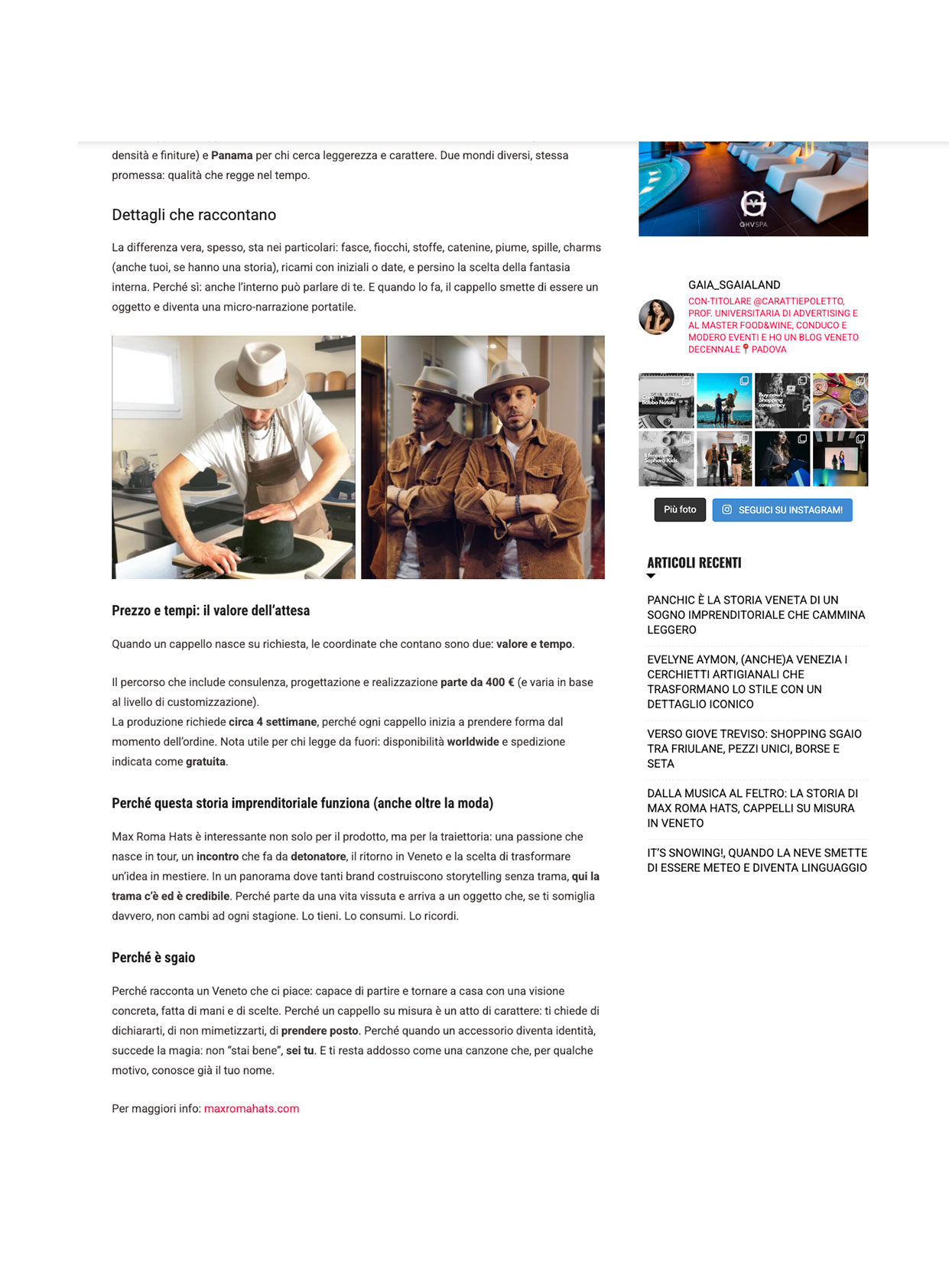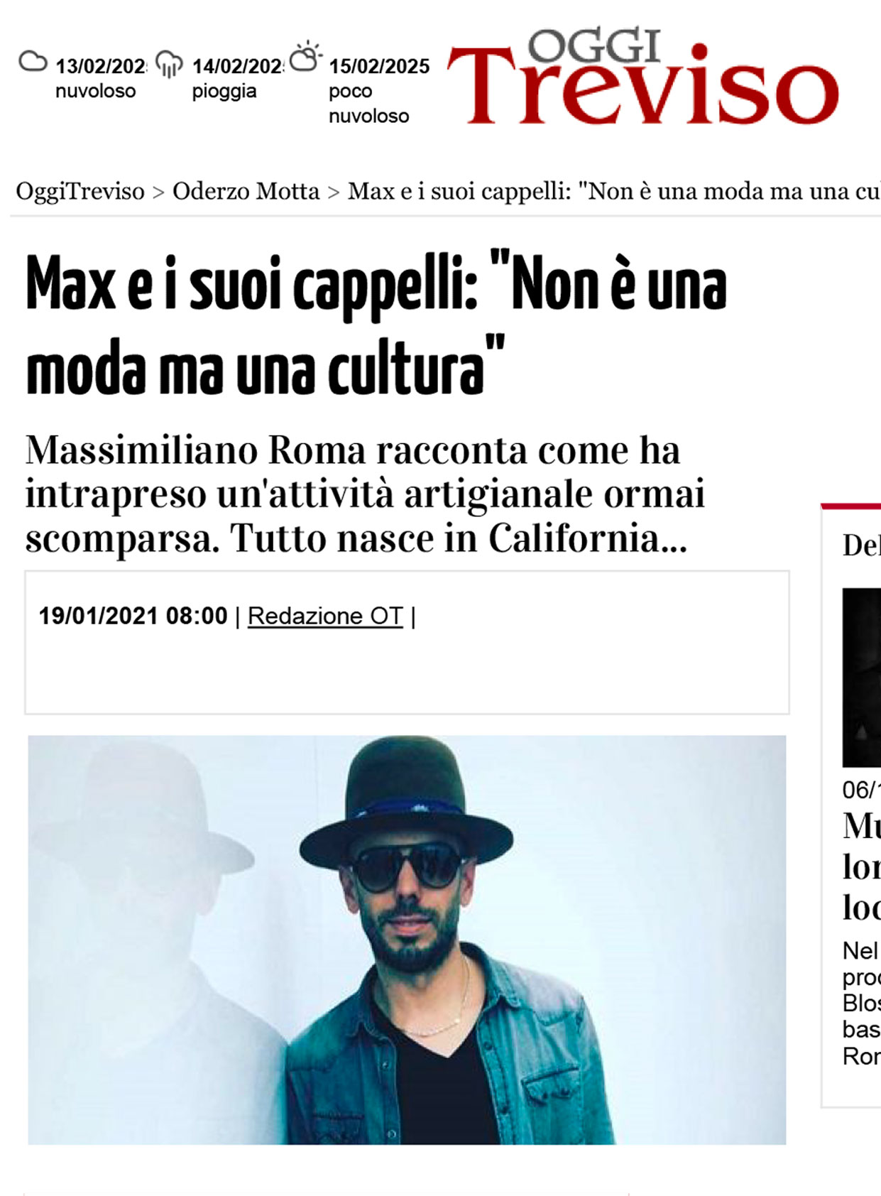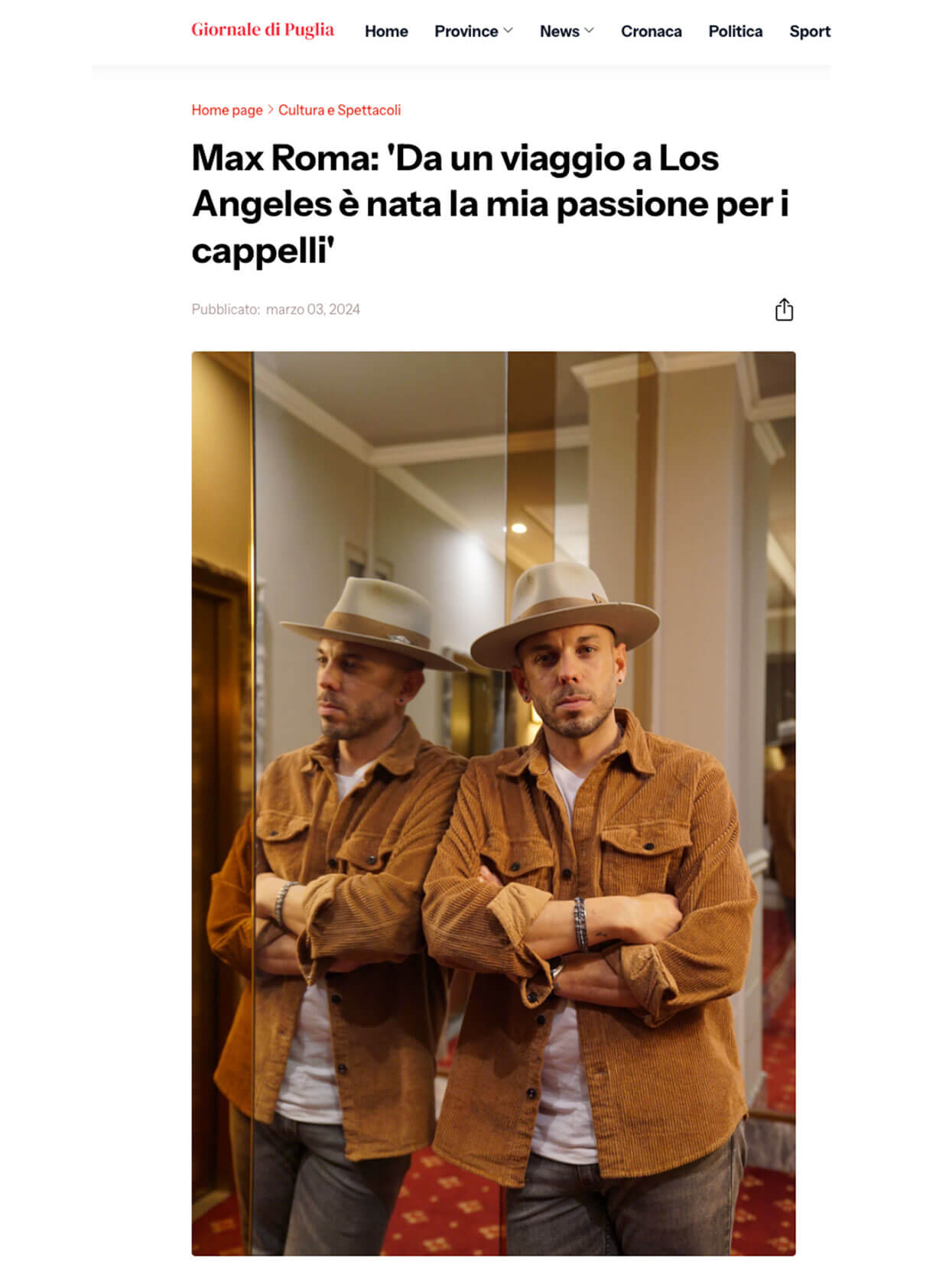 Ogni cappello racconta una storia, e dietro ogni storia c’è una passione che prende forma. In questa sezione troverai interviste, articoli e testimonianze che parlano di Max Roma Hats: il percorso, l’ispirazione e la dedizione che rendono ogni creazione unica. Sfoglia la raccolta e scopri cosa dicono di noi esperti del settore, artisti e appassionati di stile.